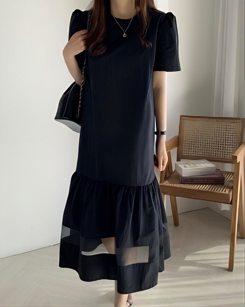 足元のシースルーが涼しげなサラッと着られるワンピース。