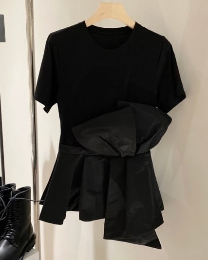 ウエストのデザインが印象的なTシャツ。
